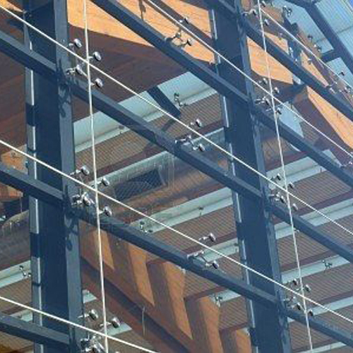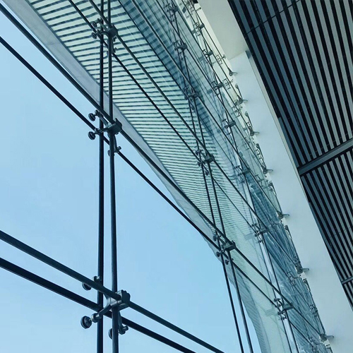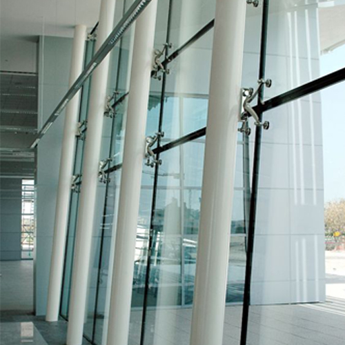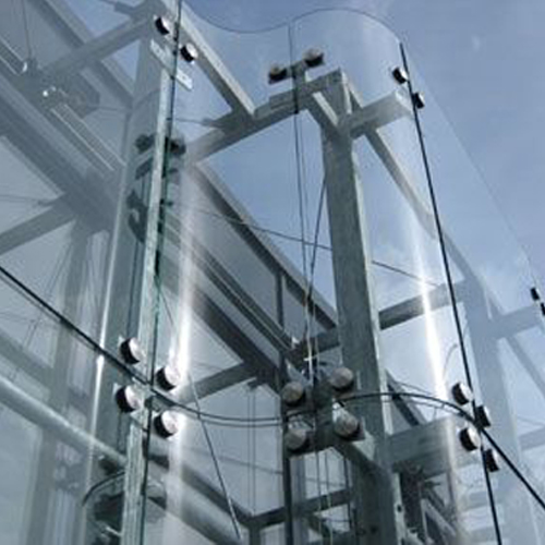 Transparan cephe sisteminde camları taşıyan ana strüktür, binanın kullanım amacına uygun, estetik çelik konstrüksiyonlardan oluşmaktadır. Bu sistemde camlar, çelik strüktüre bağlı paslanmaz çelik elemanlarla taşıtılmakta, sızdırmazlık için camlar arasındaki yatay ve düşey derzlere ultraviyole ışınlarına dayanıklı silikon çekilmektedir. Bu sistemde camların ön ve arkasında cephe boyunca devam eden bir taşıyıcı bulunmayıp yatayda cam köşelerinden ~ 1/6 uzaklıkta bulunan 100 mm genişliğinde ve 70 mm yüksekliğinde tutamaklar görünmektedir (Resim 1.17). Bu sistemde camlar delinmeyip tutamaklar fugadan çıkmaktadır. Cephe sisteminde, arka taşıyıcı sistem olarak düşeyde kalın temperli cam plakalar kullanılır. Bu cam plakalar düşeyde birbirine paslanmaz çelik lamalarla birleştirilerek 12 m yüksekliğe kadar güvenle uygulanabilir. Yataylarda herhangi bir taşıyıcıya ihtiyaç duyulmadan, cam dikmelerin sehimleri ana strüktürdeki camlarla alınmaktadır. Dört tarafından delinen cephe camları paslanmaz rotiller vasıtası ile arka cam taşıyıcılara mekanik olarak bağlanmaktadır. Bu transparan cephe sisteminde camlar lamine tek cam veya lamine çift cam olarak kullanılabilmektedir. Transparan cephe sisteminde, giydirme cephe sistemlerini tamamlayıcı mahiyette, tamamen geçirgen ve akıcı mekân hissini veren, bütünüyle cam yüzeyleri taşıyan çekme gergi sistemleri de mevcuttur. Böylece bugüne kadar sıkça kullanılan ikincil alüminyum elemanların kullanımına gerek kalmamaktadır ve kırılmalar nedeniyle oluşacak problemler ortadan kalkmaktadır.